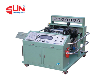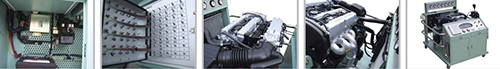 It is composed as an efficient system for automotive engineer qualifying education and inspection training such as engine tune-up, exhaust gas, ignition timing, intake pipe, vacuum level, cylinder pressure, radiator, timing, fan belt, fuel, oil, electrolyte, charging,moving circuit, etc.